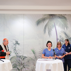 Kardinal Schönborn segnet neues Kinderpflegedomizil "Fridolina" im Haus der Barmherzigkeit. Dieses bietet ein stationäres Pflegeangebot für chronisch kranke Kinder.
