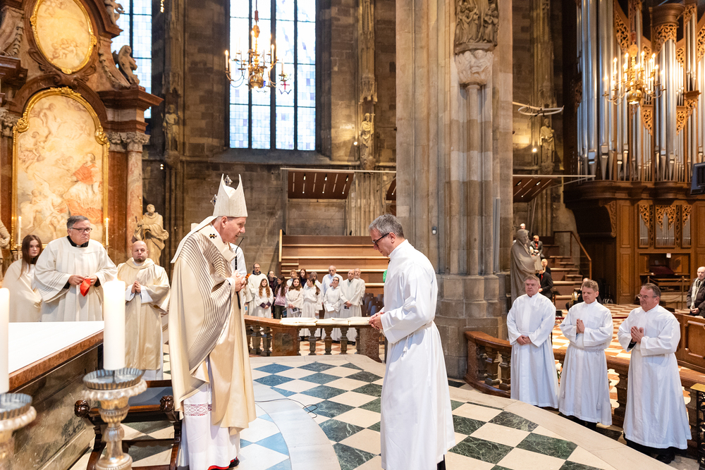 Am 9. November wurden sechs verheiratete Männer von Kardinal Schönborn im Wiener Stephansdom zu Ständigen Diakonen geweiht. Wir waren mit der Karmera mit dabei.